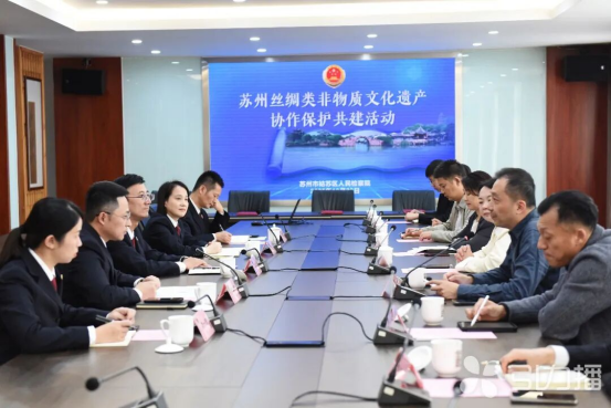 10月22日,蘇州絲綢類非物質(zhì)文化遺產(chǎn)協(xié)作保護(hù)共建活動(dòng)在姑蘇區(qū)人民檢察院舉行。蘇州市非遺辦、蘇州絲綢博物館、姑蘇區(qū)人民檢察院、姑蘇區(qū)教育體育和文化旅游委員會(huì)、姑蘇區(qū)市場(chǎng)監(jiān)督管理局、蘇城公證處以及蘇州絲綢企業(yè)家代表共同出席了活動(dòng)。
