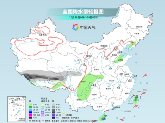 明天,西藏中南部、青海南部、川西高原北部等地部分地區(qū)有小到中雪或雨夾雪,其中,西藏中部等地部分地區(qū)有大到暴雪,局地大暴雪。遼東半島、西藏東南部、黃淮東部、西南地區(qū)東部、海南島、臺(tái)灣島等地部分地區(qū)有小到中雨,其中,海南島東南部、臺(tái)灣島東部等地部分地區(qū)有大雨,局地暴雨。
