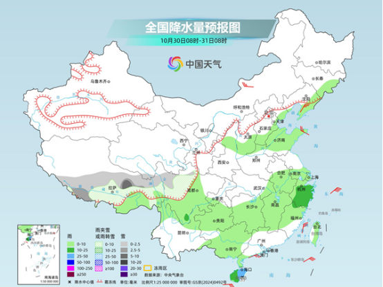 未來三天(10月28日至30日),青藏高原部分地區(qū)雨雪頻繁,局地有暴雪或大暴雪,需注意做好相關(guān)防御措施。此外,明天,我國中東部地區(qū)降水將增多,公眾雨雪天出行請(qǐng)留意交通安全。氣溫方面,今明天,我國大部氣溫回升,但晝夜溫差拉大,公眾請(qǐng)適時(shí)調(diào)整著裝,謹(jǐn)防感冒。