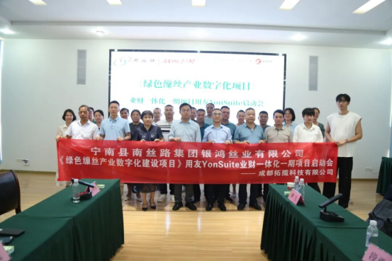 10月13日,銀鴻絲業(yè)公司《綠色繅絲產(chǎn)業(yè)數(shù)字化建設(shè)項(xiàng)目》業(yè)財(cái)一體化一期用友YonSuite啟動(dòng)會(huì)在誼興絲業(yè)二樓會(huì)議室舉行。公司班子成員、各車(chē)間部門(mén)負(fù)責(zé)人和成都拓?cái)埧萍加邢薰究偨?jīng)理段勇軍及開(kāi)發(fā)團(tuán)隊(duì)齊聚一堂,共同開(kāi)啟公司“智改數(shù)轉(zhuǎn)”的重要時(shí)刻。