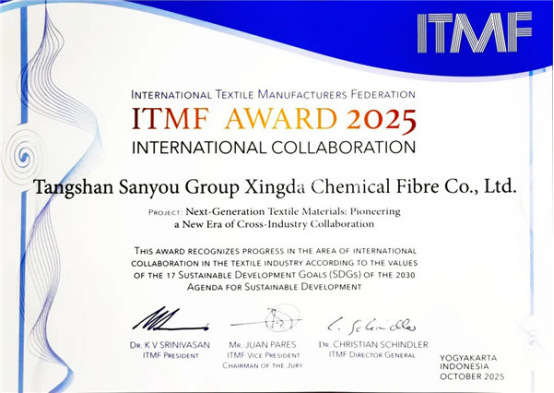 其中,中國大陸企業(yè)表現(xiàn)亮眼:連云港杜鐘新奧神氨綸有限公司憑借“高性能生物基氨綸的工業(yè)化生產(chǎn)”項目,以技術(shù)突破推動氨綸產(chǎn)業(yè)向綠色低碳轉(zhuǎn)型,榮膺“2025國際紡聯(lián)可持續(xù)和創(chuàng)新獎”;唐山三友集團興達化纖有限公司則以“下一代紡織材料,締造跨界合作新紀元”的實踐成果,通過材料創(chuàng)新與全球協(xié)同構(gòu)建產(chǎn)業(yè)新生態(tài),摘得“2025國際紡聯(lián)國際合作獎”,兩項榮譽充分彰顯了中國大陸紡織企業(yè)在全球可持續(xù)發(fā)展與國際合作中的標桿實力。