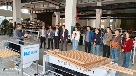 在各基地現(xiàn)場(chǎng),視察組認(rèn)真聽(tīng)取負(fù)責(zé)人關(guān)于智慧桑蠶技術(shù)落地成效的介紹。從恒晟基地的機(jī)械化喂蠶、脫繭機(jī)、溫濕度自動(dòng)調(diào)控系統(tǒng),到天富基地的智能化蠶室管理模式,再到南大門合作社的飼料養(yǎng)蠶創(chuàng)新嘗試,委員們逐一詢問(wèn)智慧模式在提升蠶繭產(chǎn)量質(zhì)量、降低人工勞動(dòng)強(qiáng)度、節(jié)約養(yǎng)殖成本等方面的實(shí)際成效。同時(shí),就技術(shù)推廣、資金投入、人才保障、產(chǎn)業(yè)鏈配套服務(wù)等發(fā)展難題與基地負(fù)責(zé)人深入交流。