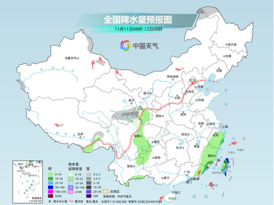 具體來看,中央氣象臺預(yù)計,今天,內(nèi)蒙古東北部、黑龍江西北部、新疆北疆東北部、青海東南部、甘肅西南部、川西高原東北部等地部分地區(qū)有小到中雪或雨夾雪;廣東東南部、福建東南部、浙江東部、臺灣島大部等地部分地區(qū)有中到大雨,其中,臺灣島東北部和東南部等地部分地區(qū)有暴雨或大暴雨。