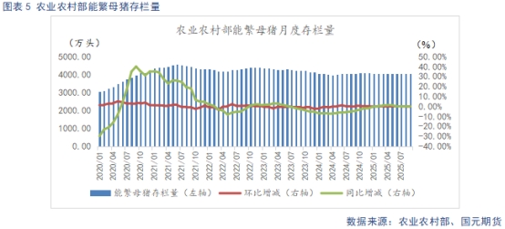 根據(jù)農(nóng)業(yè)農(nóng)村部數(shù)據(jù)顯示,2025年9月末全國能繁母豬存欄量4035萬頭,同比下降0.7%,環(huán)比下降0.2%,根據(jù)農(nóng)業(yè)農(nóng)村部新修正的《生豬產(chǎn)能調(diào)控實(shí)施方案》,當(dāng)前能繁存欄相當(dāng)于正常保有量的合理區(qū)間上限。環(huán)比同比均出現(xiàn)小幅下降,反映出產(chǎn)能去化勢頭初顯。不過當(dāng)前能繁母豬存欄基數(shù)較大,加之生產(chǎn)效率提升,至26年二季度,理論產(chǎn)能依舊偏大。