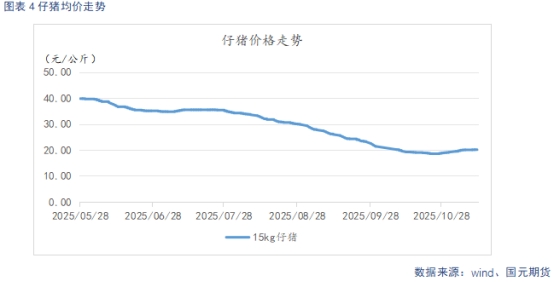 截至11月12日,仔豬出欄均價(jià)20.09元/公斤,較上周環(huán)比上漲0.4元/公斤。供給壓力較大,養(yǎng)殖端對(duì)后市預(yù)期不強(qiáng),補(bǔ)欄積極性不高,仔豬價(jià)格處于下行通道。近期仔豬價(jià)格持續(xù)低迷,低價(jià)補(bǔ)欄意愿略有上升,仔豬價(jià)格止跌企穩(wěn)。