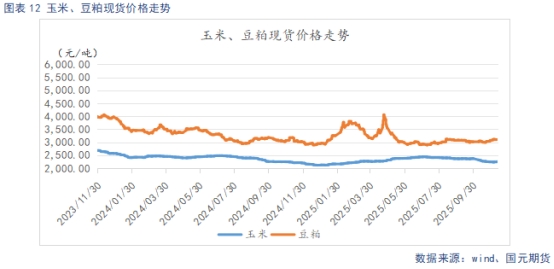 截至11月11日,玉米(2388, 9.00, 0.38%)現(xiàn)貨均價(jià)2251.57元/噸,較上周環(huán)比上漲17.26元/噸,豆粕(3111, 18.00, 0.58%)現(xiàn)貨均價(jià)3049.14元/噸,較上周環(huán)比上漲55.15元/噸,玉米、豆粕小幅上行。玉米從基本面上看,當(dāng)前處于集中上市階段,供應(yīng)充裕相對(duì)充足。不過售糧進(jìn)度較快,疊加成本端支撐,玉米下方仍有支撐,預(yù)計(jì)短期震蕩為主。??豆粕從基本面看,海關(guān)數(shù)據(jù)顯示,海關(guān)10月數(shù)據(jù)顯示,中國10月及1-10月大豆(4521, -21.00, -0.46%)進(jìn)口量為近年歷史同期高點(diǎn),四季度國內(nèi)進(jìn)口大豆以及豆粕供應(yīng)寬松預(yù)期不變,庫存超預(yù)期反彈,豆粕上方承壓。