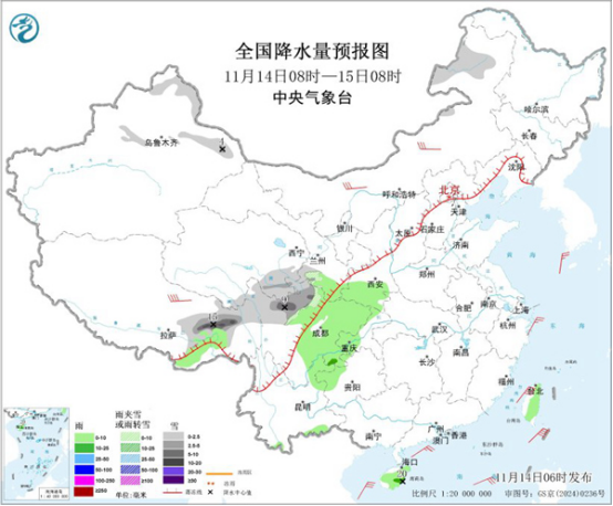 中央氣象臺預(yù)計,今天,內(nèi)蒙古東北部、新疆北疆北部和東部、西藏東部、青海東南部、甘肅西南部、川西高原北部等地部分地區(qū)有小到中雪或雨夾雪,其中,西藏東北部、川西高原北部等地局地有大到暴雪。西藏東南部、西北地區(qū)東南部、西南地區(qū)東部、海南島等地部分地區(qū)有小到中雨,其中,海南島東南部等地部分地區(qū)有大雨。