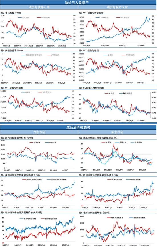歐洲西北及地中海煉廠利潤大幅上升,部分配置裝置利潤單周增長4–6美元/桶。 受美國阻止 Gunvor 收購 Lukoil 海外資產(chǎn)影響,歐洲市場供應(yīng)安全擔(dān)憂升溫,成品油裂差全面走強。 中餾分油裂差上漲約7美元/桶,航煤裂差上漲近5美元/桶,為今年最高水平。 盡管利潤上升吸引煉廠提高開工率,但市場預(yù)計12月起將逐步見頂回調(diào)。