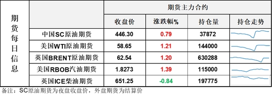 【1】WTI主力原油(607, -8.60, -1.40%)期貨收漲0.7美元,漲幅1.21%,報(bào)58.65美元/桶;布倫特主力原油期貨收漲0.74美元,漲幅1.2%,報(bào)62.54美元/桶;INE原油期貨收漲0.79%,報(bào)446.3元。