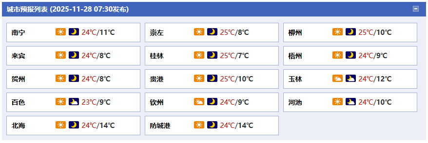 廣西:今天全區(qū)晴好為主 29日起桂南云量增多 有小雨