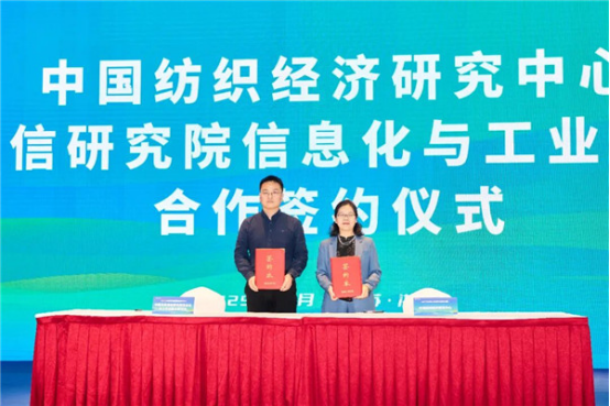 中國紡織工業(yè)聯(lián)合會(huì)研究室主任、中國紡織經(jīng)濟(jì)研究中心主任華珊,中國信息通信研究院信息化與工業(yè)化融合研究所副所長黃偉分別代表中國紡織經(jīng)濟(jì)研究中心、中國信息通信研究院合作簽約。此次合作,雙方將聚焦綠色診斷、數(shù)字賦能等關(guān)鍵領(lǐng)域,為紡織行業(yè)綠色轉(zhuǎn)型提供智力支持和技術(shù)支撐。