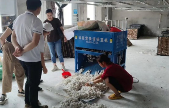 行業(yè)專家現(xiàn)場(chǎng)查看快速摘繭機(jī)使用情況