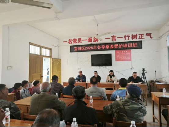 培訓(xùn)采取“理論授課+物資幫扶”相結(jié)合的方式,將實(shí)用技術(shù)和農(nóng)用物資送到田間地頭,切實(shí)幫助蠶農(nóng)解決生產(chǎn)難題,為桑蠶產(chǎn)業(yè)高質(zhì)量發(fā)展夯實(shí)基礎(chǔ)。培訓(xùn)現(xiàn)場,桑蠶中心技術(shù)人員用通俗易懂的語言,為農(nóng)戶講解桑園冬季管護(hù)、病蟲害綠色防控等關(guān)鍵技術(shù),詳細(xì)解析家蠶常見病害的識(shí)別診斷與綜合防治方法,并反復(fù)強(qiáng)調(diào)“預(yù)防為主、防治結(jié)合”的科學(xué)養(yǎng)殖理念。農(nóng)戶們認(rèn)真翻閱技術(shù)手冊(cè),邊聽邊記,積極提問,技術(shù)人員一一耐心解答,現(xiàn)場學(xué)習(xí)氣氛熱烈。