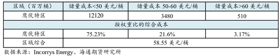 在鷹伏特區(qū)域有1200億桶石油資源的開(kāi)采成本低于每桶50美元,1700億桶石油資源的開(kāi)采成本低于每桶60美元。