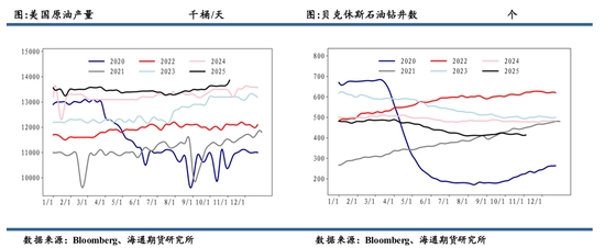 當(dāng)然在這個(gè)基礎(chǔ)上,原油市場(chǎng)供應(yīng)端還面臨地緣動(dòng)蕩、制裁帶來(lái)的擾動(dòng),這些不可靠因素帶來(lái)的影響在2025年市場(chǎng)參與者已經(jīng)充分領(lǐng)教過(guò),從目前的全球局勢(shì)來(lái)看2026年的原油市場(chǎng)仍然面臨這些不確定性因素的影響。而走低的油價(jià)會(huì)對(duì)原油供需二端同樣有所影響,2025年油價(jià)幾次跌破60美元時(shí),美國(guó)石油鉆機(jī)數(shù)均出現(xiàn)過(guò)明顯回落,而低油價(jià)同樣會(huì)提升原油在能源市場(chǎng)的競(jìng)爭(zhēng)力提振消費(fèi)需求,而且隨著油價(jià)的走低會(huì)提升相關(guān)原油消費(fèi)國(guó)儲(chǔ)備建庫(kù)需求,這意味著原油市場(chǎng)紙面的供應(yīng)過(guò)剩壓力可能會(huì)低于預(yù)期。
