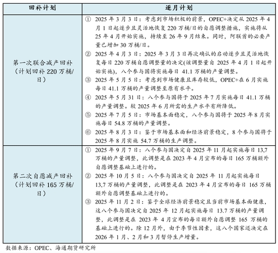 如果復(fù)盤(pán)2025年來(lái),歷屆OPEC+會(huì)議決策,可以發(fā)現(xiàn)其對(duì)于整體的回補(bǔ)口徑也在不斷變化: