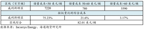 在美國(guó)威利斯頓地區(qū)有750 億桶石油資源的開(kāi)采成本低于每桶50美元,近1000 億桶石油資源的開(kāi)采成本低于每桶60美元。