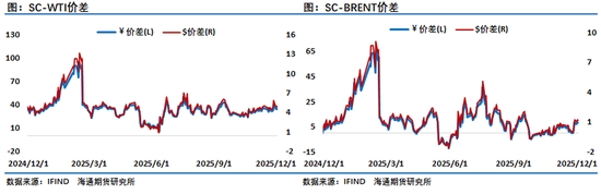 2025年原油市場(chǎng)月差波動(dòng)比上一年大了很多,這意味著原油市場(chǎng)供應(yīng)端的擾動(dòng)帶來(lái)了不確定性,隨著特朗普重新當(dāng)選美國(guó)新一屆總統(tǒng),其一系列關(guān)稅、制裁、地緣摩擦舉措給原油市場(chǎng)帶來(lái)了明顯的波動(dòng),上半年對(duì)俄羅斯制裁、以伊地緣沖突均讓月差大幅沖高,而歐佩克+的提速增產(chǎn)又讓月差從高位修復(fù),但整體來(lái)看月差結(jié)構(gòu)2025年可以說(shuō)是大起大落,隨著供應(yīng)過(guò)剩壓力的逐步顯現(xiàn),月差下半年整體呈現(xiàn)了逐步走弱的跡象。