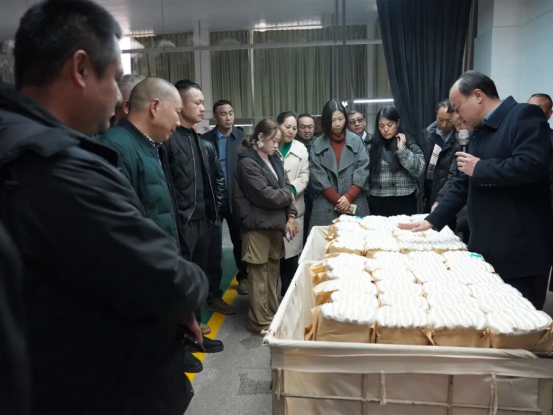 在繭絲綢產(chǎn)業(yè)聯(lián)盟綜合服務(wù)總部、優(yōu)質(zhì)繭絲生產(chǎn)基地及蠶桑資源綜合開發(fā)基地。通過聽取負(fù)責(zé)人介紹、實(shí)地查看生產(chǎn)流程,參會(huì)人員詳細(xì)了解了寧南縣從蠶桑種植到繭絲加工、從品牌打造到資源綜合利用的全產(chǎn)業(yè)鏈發(fā)展模式,對其標(biāo)準(zhǔn)化生產(chǎn)水平和產(chǎn)業(yè)融合成效給予高度評價(jià)。