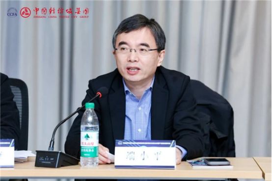 中國(guó)化纖協(xié)會(huì)副會(huì)長(zhǎng)靳高嶺主持會(huì)議