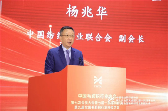 中國(guó)紡織工業(yè)聯(lián)合會(huì)副會(huì)長(zhǎng)楊兆華宣讀《關(guān)于中國(guó)毛紡織行業(yè)協(xié)會(huì)第七屆負(fù)責(zé)人人選審核結(jié)果的通知》