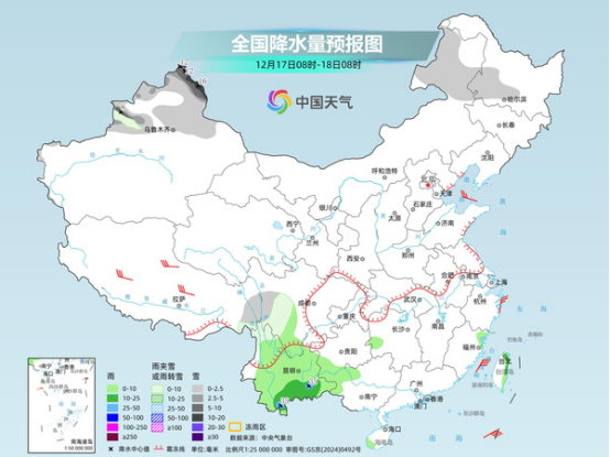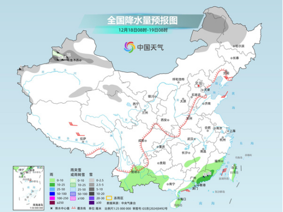 后天,內(nèi)蒙古東北部、黑龍江中北部、新疆北部和南疆西部山區(qū)、甘肅河西等地部分地區(qū)有小到中雪或雨夾雪,其中,新疆沿天山地區(qū)和伊犁河谷局地有大到暴雪。湖南南部、福建東部和南部、西南地區(qū)南部、廣西西南部、廣東東部和南部、海南島東部、臺(tái)灣島東部等地部分地區(qū)有小到中雨,其中,廣東東部局地有大雨。