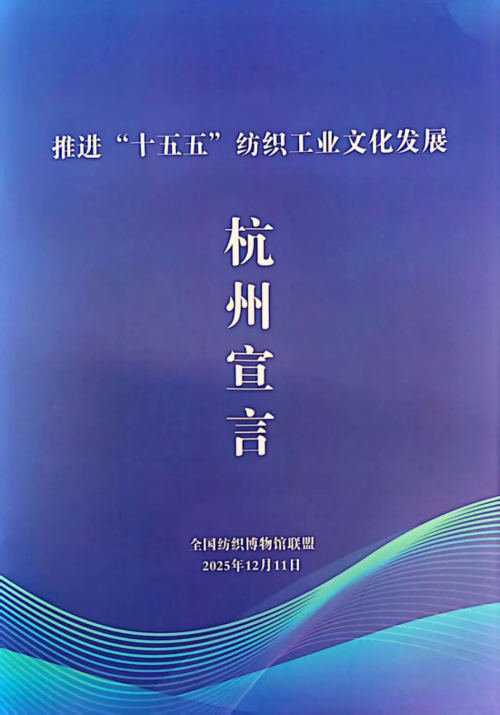 會上還發(fā)布了《推進“十五五”紡織工業(yè)文化發(fā)展杭州宣言》。宣言提出六大行動綱領(lǐng):深植文明根脈,構(gòu)筑紡織文化理論體系;推動文化、科技與產(chǎn)業(yè)融合創(chuàng)新;以“產(chǎn)業(yè)文化化”與“文化產(chǎn)業(yè)化”賦能時尚升級;賡續(xù)綠色理念,弘揚可持續(xù)發(fā)展文化;拓展社會協(xié)作,建設(shè)開放共享的紡織文化共同體;深化文明互鑒,共筑絲路精神新時代榮光,呼吁全國紡織博物館及相關(guān)機構(gòu)共同行動,以文化力量支撐現(xiàn)代化紡織強國建設(shè)。