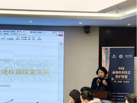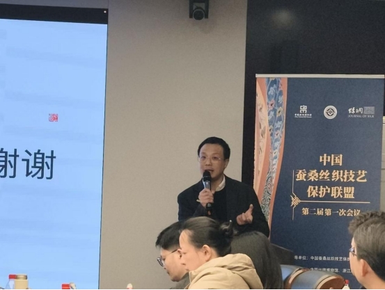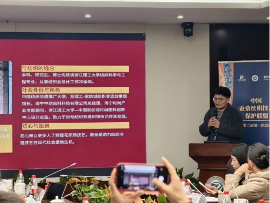 浙江理工大學黨委委員、組織部長任寧代表學校致歡迎詞:“浙江理工大學是我國最早創(chuàng)辦新學教育機構之一,學校在紡織絲綢領域堅持以守護非遺根脈,傳承絲綢文化作為責任擔當,將非遺保護融入人才培養(yǎng)科學研究與社會服務全過程。聯(lián)盟年會為蠶桑絲織技藝保護工作搭建交流的平臺,我校也將繼續(xù)發(fā)揮高校的優(yōu)勢與橋梁作用,與聯(lián)盟的專家、傳承機構攜手推進絲綢非遺的創(chuàng)新轉(zhuǎn)化,構建絲綢非遺的深度育人體系,持續(xù)拓展絲綢國際傳播?!?/p>