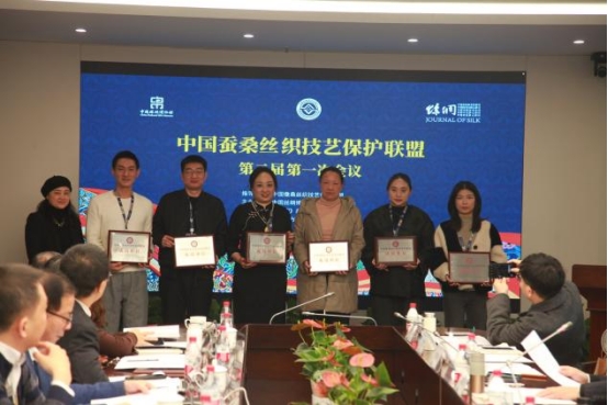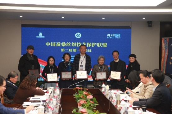 隨后,全體成員一致表決同意蘇州市錢小萍古絲綢復制研究所、廣西繭絲綢行業(yè)協(xié)會、杭州萬事利絲綢文化股份有限公司、桐鄉(xiāng)市萬錦堂絲綢紡織有限公司成為保護聯(lián)盟新成員。