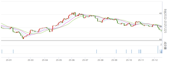 今日(2025年12月16日,周二)中國繭絲綢交易市場生絲電子指數(shù)報收于4562.98點(diǎn)。B絲2022D(商檢4A級生絲):251225合約報平,收于45.60萬元;260325合約下跌0.03萬元報收于45.69萬元;260925合約下跌0.06萬元報于45.54萬元。