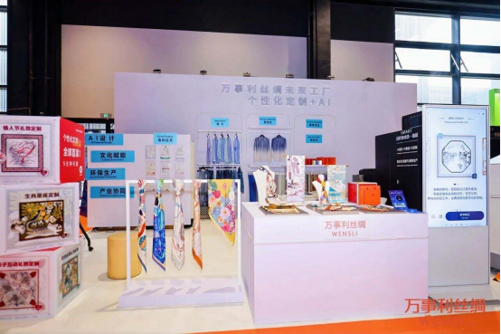 11月上旬,2025年世界互聯(lián)網(wǎng)大會烏鎮(zhèn)峰會舉行,萬事利的展臺擠滿了消費者。數(shù)字屏幕上流光溢彩,只需輸入“敦煌飛天”“現(xiàn)代都市”等關(guān)鍵詞,數(shù)秒之內(nèi),數(shù)十款融合古典神韻與現(xiàn)代美學的絲巾設(shè)計方案便躍然屏上。