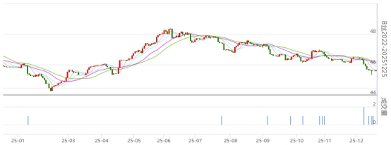 今日(周四)盤面遠(yuǎn)近生絲合約價格在暫時止跌基礎(chǔ)上小幅波動,260325生絲合約略減倉小幅收紅。從生絲電子指數(shù)技術(shù)來看,當(dāng)前 KDJ 指標(biāo)三值均處于20以下的超賣區(qū)間,理論上存在超賣反彈的可能性,但K、D、J 三線仍處于低位即將粘合狀態(tài)。同時,MACD綠柱有所縮短。