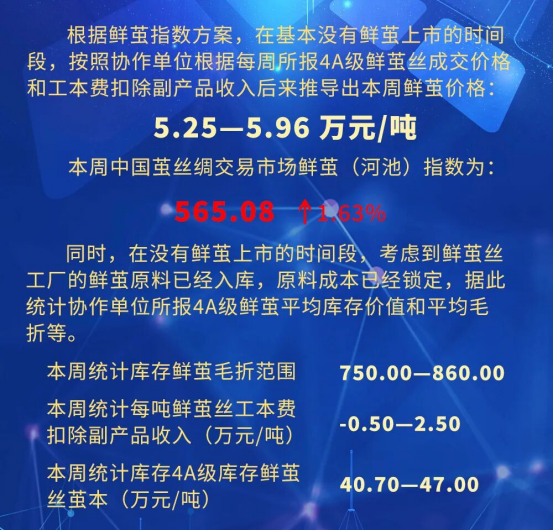 鮮繭價(jià)格指數(shù)方面,本周漲幅較為顯著。根據(jù)指數(shù)編制規(guī)則,在沒有鮮繭上市的時(shí)間段,通過(guò)單位報(bào)送的生絲成交價(jià)格、工本費(fèi)等核心指標(biāo),推導(dǎo)蠶繭價(jià)格,同時(shí)結(jié)合當(dāng)前 繅絲企業(yè)已完成鮮繭入庫(kù)并鎖定生產(chǎn)成本的實(shí)際,增加當(dāng)庫(kù)存繭本、工本費(fèi)、毛折等幅度等的統(tǒng)計(jì)維度。當(dāng)前顯示,繭絲價(jià)格倒掛較為明顯。