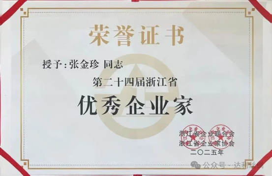 絲企新聞丨達利絲綢總經(jīng)理張金珍榮獲第24屆浙江省優(yōu)秀企業(yè)家光榮稱號