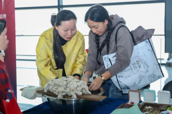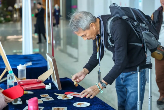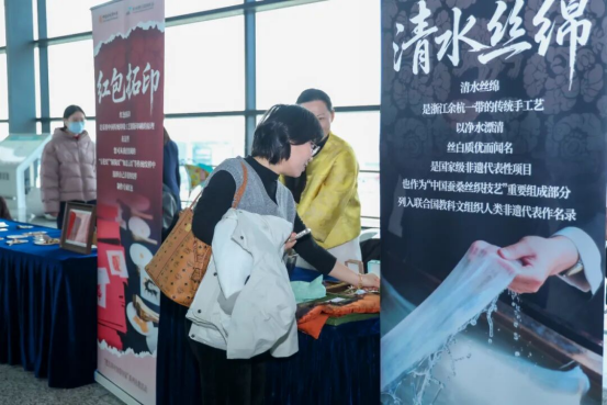 “把吉祥中國(guó)帶回家”公眾體驗(yàn)活動(dòng)是國(guó)絲公共教育品牌的全新延伸,將圍繞春節(jié)、端午和中秋等傳統(tǒng)佳節(jié),推出貼合大眾需求的絲綢主題手作活動(dòng)。在現(xiàn)場(chǎng)體驗(yàn)區(qū),旅客們體驗(yàn)吉祥紋樣拓印、扎染項(xiàng)目,觀(guān)看“清水絲綿”非遺傳承人現(xiàn)場(chǎng)展演傳統(tǒng)技藝,紛紛駐足觀(guān)摩、拍照記錄。