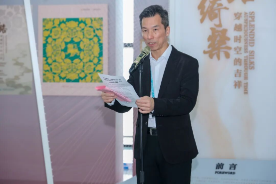 開(kāi)幕式上,中國(guó)絲綢博物館館長(zhǎng)季曉芬向大家介紹特展的策展思路與“把吉祥中國(guó)帶回家”公眾體驗(yàn)活動(dòng)的核心計(jì)劃。并表示絲綢是中華優(yōu)秀傳統(tǒng)文化的璀璨瑰寶,吉祥紋樣則承載著古人對(duì)美好生活的向往與追求。此次與杭州蕭山國(guó)際機(jī)場(chǎng)攜手,不僅是將博物館的專(zhuān)業(yè)展覽“搬出館舍”,更是通過(guò)“把吉祥中國(guó)帶回家”系列社教活動(dòng),讓非遺技藝、吉祥文化走進(jìn)大眾日常生活,讓每一位旅客都能成為絲綢文化的體驗(yàn)者、傳承者與傳播者。