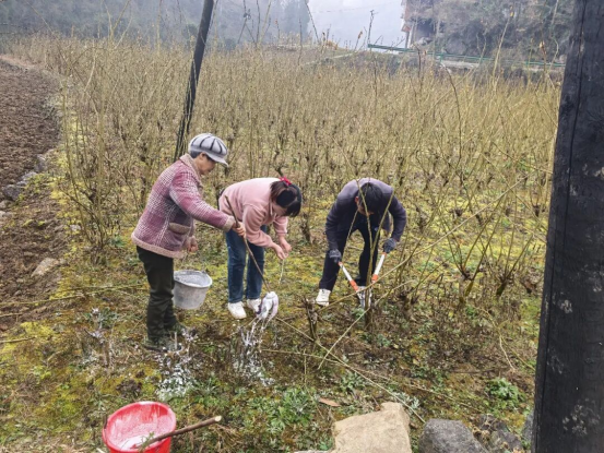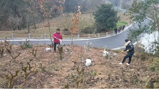 冬日的石泉縣高興村桑園中,寒意雖濃,卻難掩農(nóng)戶們辛勤勞作的熱忱。眾人分工明確、配合默契,有的手持修枝剪,精準剪除病弱枝與過密枝,優(yōu)化桑樹樹形;有的提著石灰桶,手持刷子,細致地為桑樹主干均勻刷上石灰水;還有的翻耕土壤、清除雜草,從源頭減少病蟲害滋生。這些忙碌的身影交織,共同繪就了一幅生動的冬日田園勞作圖景。