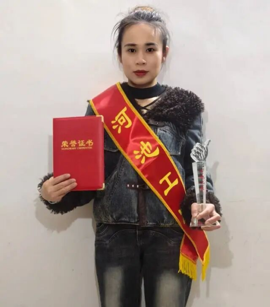 12月29日上午,環(huán)江縣江緣公司員工譚華容在河池市總工會(huì)舉行的表彰儀式上,光榮接過(guò)“河池工匠”獎(jiǎng)杯與證書(shū)。