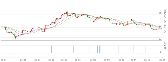 今日(2025年12月31日,周三)中國(guó)繭絲綢交易市場(chǎng)生絲電子指數(shù)微跌0.07%報(bào)收于4580.14點(diǎn),2025年生絲指數(shù)累計(jì)下跌1.12%。B絲2022D(商檢4A級(jí)生絲):260125合約下跌0.03萬(wàn)元報(bào)收45.78萬(wàn)元;260325報(bào)平,收于45.96萬(wàn)元;260925合約下跌0.03萬(wàn)元報(bào)收45.78萬(wàn)元。
