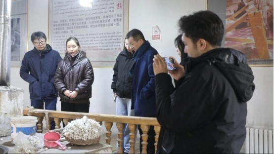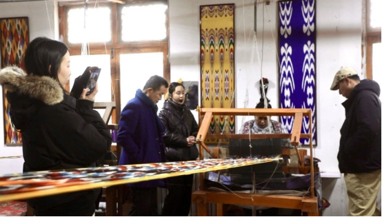 主題采訪團一行了解艾德萊斯綢的傳統(tǒng)手工織造技藝