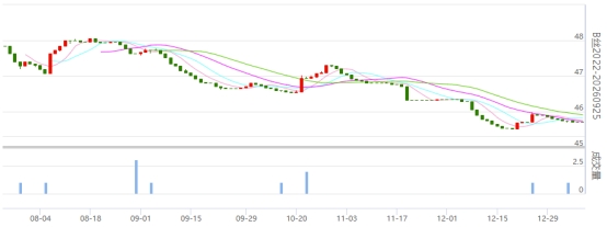 生絲主力合約微收紅 260325合約收于46萬上方(20250108)