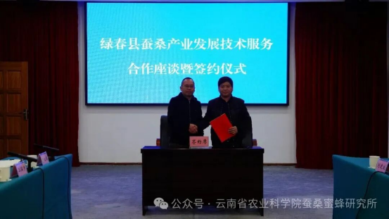 下午,耿玲德一行與綠春縣委副書記馬俊、農(nóng)業(yè)農(nóng)村和科學(xué)技術(shù)局局長李晨辰等有關(guān)領(lǐng)導(dǎo),就綠春縣蠶桑產(chǎn)業(yè)發(fā)展問題開展座談交流。會上,馬俊副書記詳細(xì)了解了桑苗氣候適應(yīng)、桑樹生長周期、病蟲害防治、蠶室建設(shè)標(biāo)準(zhǔn)、蠶臺搭建規(guī)范、種養(yǎng)關(guān)鍵技術(shù)及蠶繭回收機(jī)制等關(guān)鍵問題。耿玲德表示,蠶蜂所會充分發(fā)揮蠶??蒲袃?yōu)勢,統(tǒng)籌人才、平臺、技術(shù)、渠道等方面的資源,全程指導(dǎo)、全力支持綠春縣蠶桑產(chǎn)業(yè)發(fā)展,幫助其實現(xiàn)從“0”到“1”的突破。本著“共享共贏、風(fēng)險共擔(dān)、互惠互利”的原則,經(jīng)友好協(xié)商,雙方達(dá)成共識,綠春縣將充分依托在資金、土地、組織管理等方面優(yōu)勢,與蠶蜂所齊心協(xié)力,共同在當(dāng)?shù)靥剿靼l(fā)展蠶桑產(chǎn)業(yè),建立桑樹種植示范基地和桑蠶養(yǎng)殖示范點,打造綠春縣鄉(xiāng)村振興助農(nóng)增收特色示范點,推動綠春縣特色產(chǎn)業(yè)發(fā)展實現(xiàn)“十五五”良好開局,為鄉(xiāng)村振興戰(zhàn)略實施貢獻(xiàn)農(nóng)科力量。