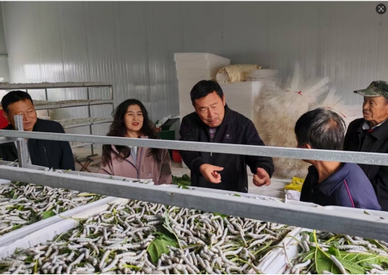 經鎮(zhèn)黨委和縣畜牧中心積極協(xié)調,2名江蘇省桑蠶養(yǎng)殖專家駐村開展免費教學,通過“手把手”指導開展技術培訓12場,發(fā)放技術手冊51份。從土地整理、桑苗栽植,到打藥防蟲、科學施肥,養(yǎng)殖全流程都有專家現(xiàn)場指導,讓農戶學得會、用得上。黑色地布為桑苗穿上“保濕衣”,精準農藥筑起“防護甲”,優(yōu)質肥料送上“營養(yǎng)餐”,科學管護讓桑苗長勢喜人?!凹夹g送到地頭,難題解決在田間,咱們心里踏實!”馮志強感慨道,正是這些全方位的技術服務,讓他這樣的養(yǎng)蠶新手初次養(yǎng)殖便大獲成功。