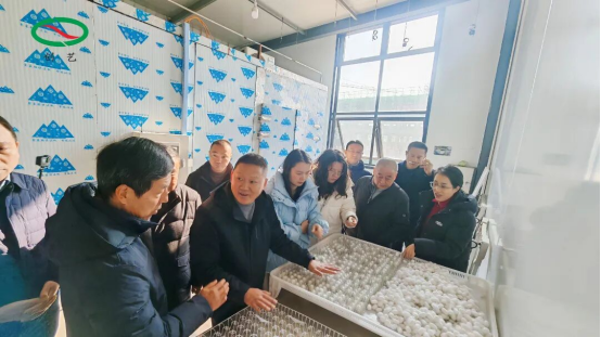 2026年1月8日,四川省農(nóng)業(yè)農(nóng)村廳原特色產(chǎn)業(yè)處處長(zhǎng)、一級(jí)調(diào)研員楊彪,四川省蠶業(yè)管理總站副站長(zhǎng)楊遠(yuǎn)萍一行赴南充市高坪區(qū),就川中北蠶桑產(chǎn)業(yè)集群建設(shè)進(jìn)展開(kāi)展專(zhuān)題調(diào)研,重點(diǎn)考察了南充蠶具公司的“人工飼料養(yǎng)蠶”項(xiàng)目,董事長(zhǎng)李學(xué)齊全程陪同,蠶具事業(yè)部總經(jīng)理藺全廷作專(zhuān)項(xiàng)匯報(bào)。市農(nóng)業(yè)農(nóng)村局副局長(zhǎng)鄭程、市蠶業(yè)管理總站站長(zhǎng)毛業(yè)煬、區(qū)鄉(xiāng)村振興服務(wù)中心黨組書(shū)記劉俊陪同調(diào)研。