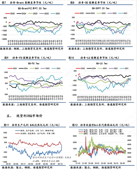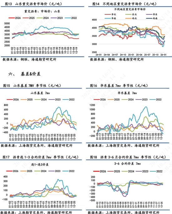 【2】現(xiàn)貨市場:①山東重交瀝青(3609, -13.00, -0.36%)市場價為3100元/噸,環(huán)比上漲0.6%,7天累計+1.0%。山東基差為-68元/噸,7天累計-5元/噸。②華東重交瀝青市場價為3200元/噸,環(huán)比持平。華東基差為+32元/噸,7天累計+35元/噸。