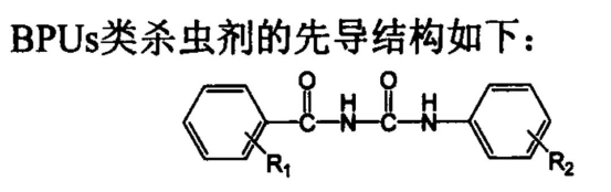 苯甲酰脲類殺蟲劑(BPUs)是以苯甲酰脲類化合物為基礎(chǔ)的殺蟲劑,通過對靶標(biāo)害蟲體內(nèi)幾丁質(zhì)進(jìn)行抑制,實(shí)現(xiàn)對靶標(biāo)害蟲進(jìn)行殺滅。苯甲酰脲類殺蟲劑對昆蟲的接觸殺作用很小,主要是通過胃毒作用來實(shí)現(xiàn)對害蟲的殺滅。殺蟲作用緩慢,在昆蟲蛻皮過程中發(fā)揮作用,一般用藥后至少3天害蟲才會死亡。對鱗翅目、鞘翅目以及同翅日昆蟲有較好的殺滅效果,同時對沒有幾丁質(zhì)的生物影響較小。