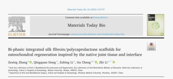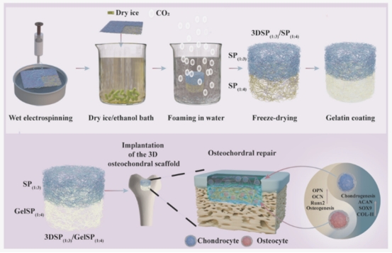 近日,國際期刊《Materials Today Bio》發(fā)表了一項創(chuàng)新性研究,題為"受天然關(guān)節(jié)組織啟發(fā)的雙相集成絲素蛋白/聚己內(nèi)酯支架用于骨軟骨再生"。該研究通過結(jié)合濕法靜電紡絲與氣體發(fā)泡技術(shù),成功開發(fā)出一種具有連續(xù)界面和異質(zhì)雙層結(jié)構(gòu)的一體化支架,有效解決了傳統(tǒng)多相支架植入后易分層的問題,為骨軟骨缺損修復(fù)提供了新策略。