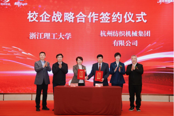 論壇現(xiàn)場舉行了浙江理工大學(xué)與杭州紡織機(jī)械集團(tuán)有限公司的戰(zhàn)略合作簽約儀式