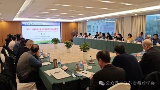 為深入學習貫徹黨的二十屆四中全會與中央經濟工作會議精神,切實把思想和行動統(tǒng)一到黨中央決策部署上來,充分發(fā)揮社會組織橋梁紐帶作用,賦能全省蠶絲產業(yè)高質量發(fā)展,近日,在召開學會十三屆五次理事會期間,專題開展黨建學習,特邀學會常務理事、蘇州大學蠶桑研究所所長李兵教授作專題分享談體會。黨建學習由學會理事長周謙主持。學會理事、會員代表及行業(yè)相關單位負責人等40余人參會。