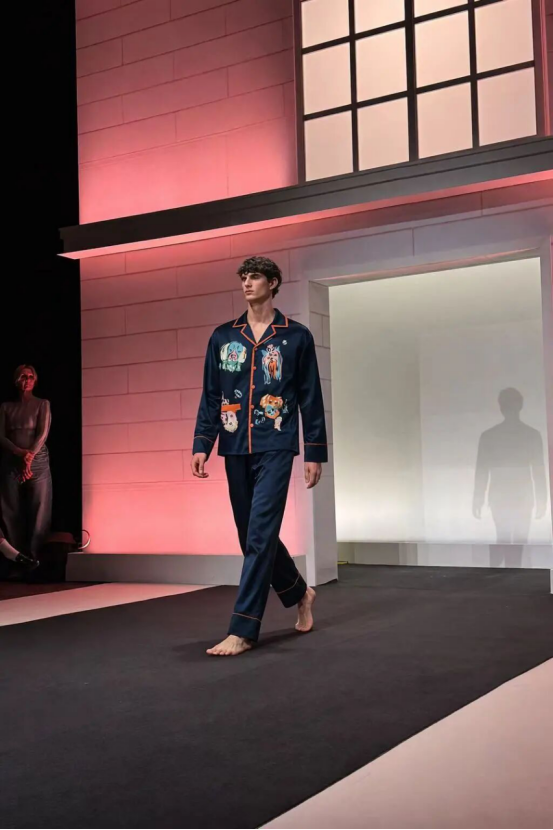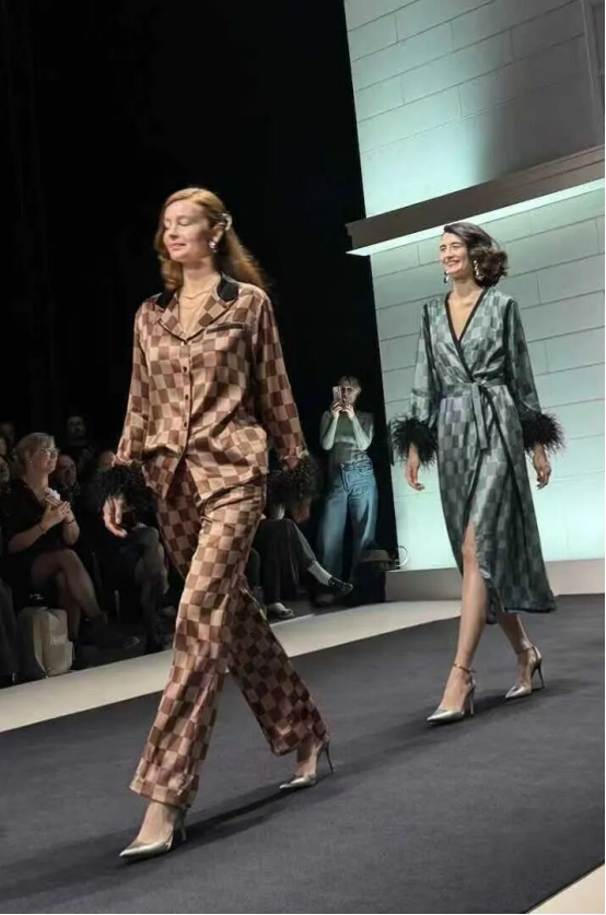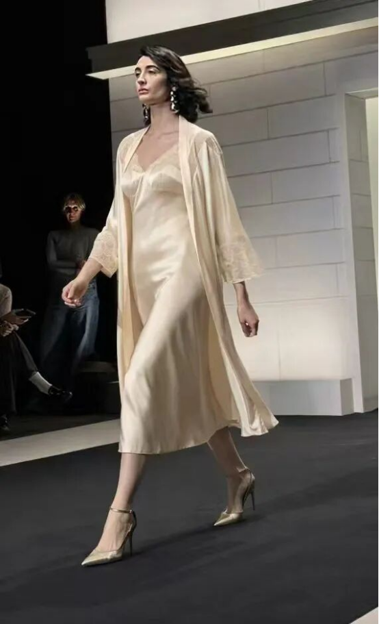 秀場之上,每一件作品都是東方文脈與現(xiàn)代設(shè)計(jì)的共生之作。桑羅之名,源自“桑下覓羅敷”的古典詩意,自帶東方絲綢文化的基因密碼。秀演中的真絲家居服、內(nèi)衣與服飾系列,以流動的線條呼應(yīng)絲綢的天然肌理,將蘇式絲綢的溫婉與當(dāng)代簡約設(shè)計(jì)相融,既保留了真絲的瑩潤光澤與透氣質(zhì)感,又以利落剪裁適配現(xiàn)代生活場景。